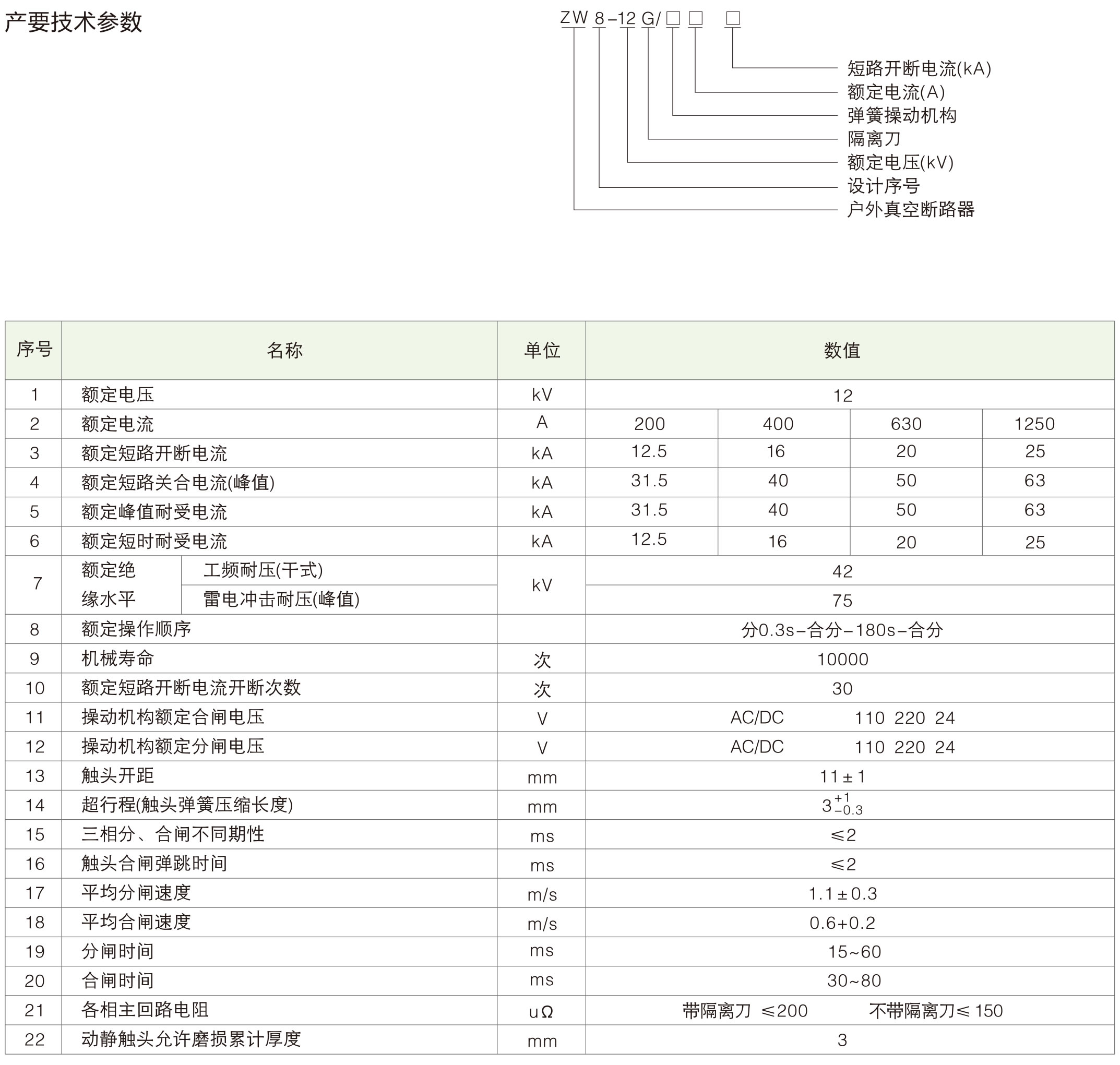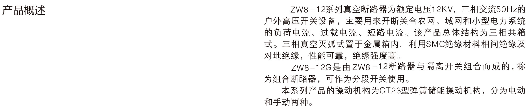 Vacuum circuit breaker ZW series