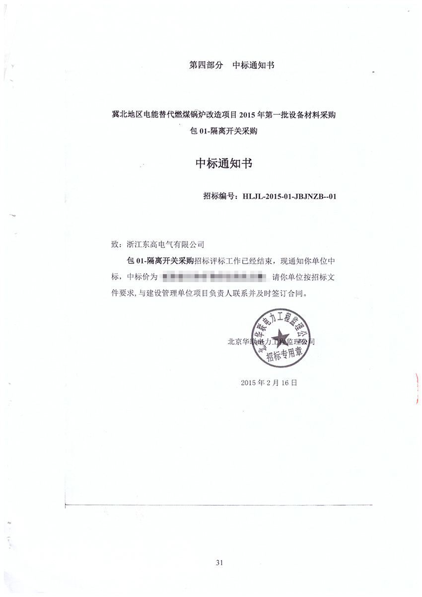 2015年国网冀北节能服务有限公司中标通知书