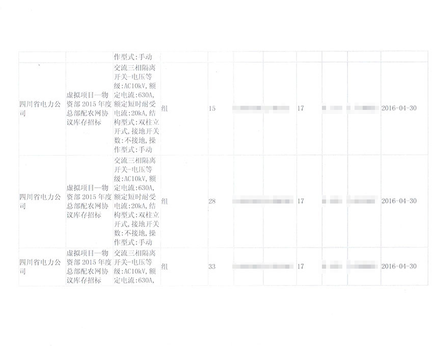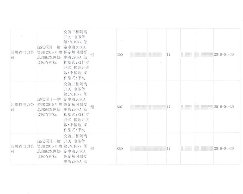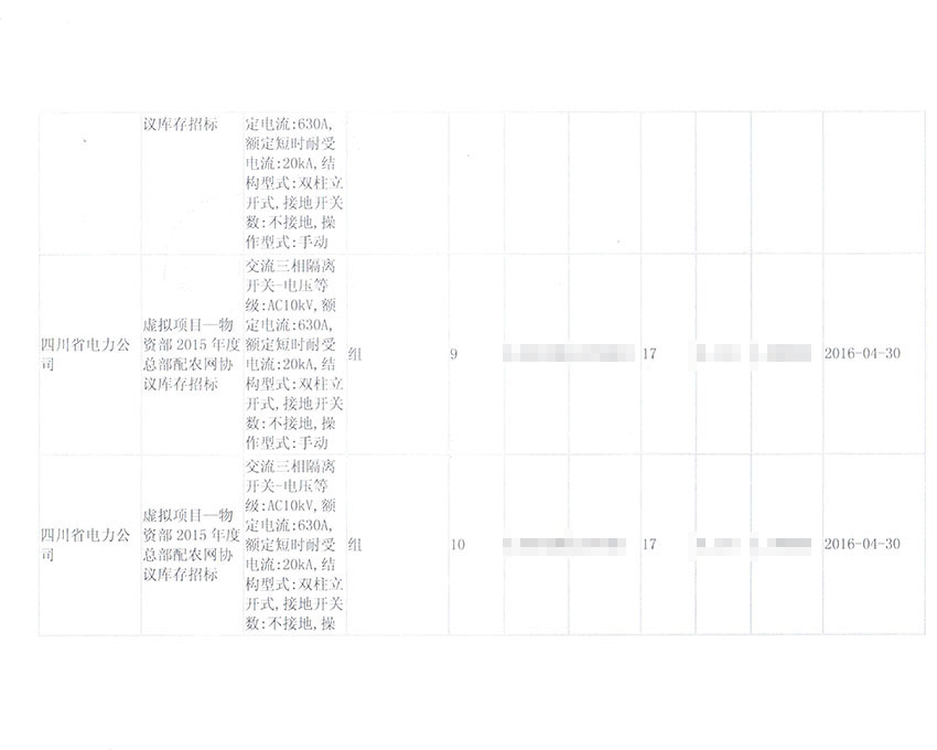 2015年国网四川省电力公司采购合同