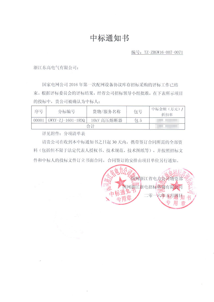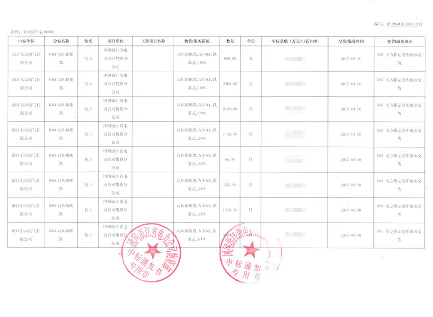2016年国网浙江省电力公司物资分公司采购合同